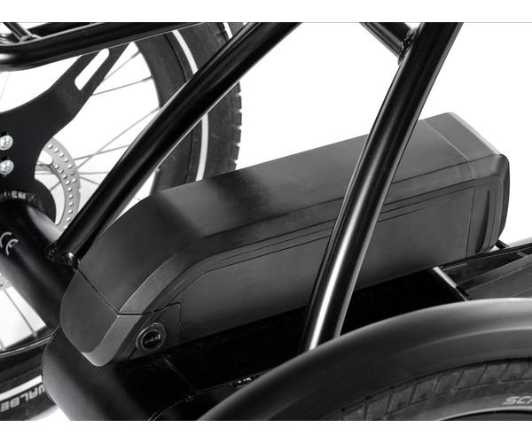 De driewieler fiets is voorzien van een Basis accupack 450Wh (actieradius 50 km)! Een Accu upgrade is niet mogelijk maar wel een extra tweede accu! Meerprijs extra accu €659,- euro , excl. oplader.